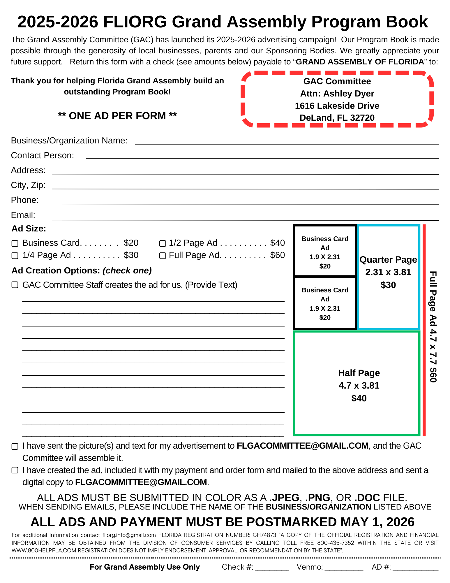 Click here for information about purchasing an Ad for our Program